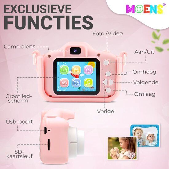 Ontdek de magische wereld door de ogen van je kind met de MOENS Kindercamera. Speciaal ontworpen om de creativiteit en het avontuurlijke instinct van kinderen aan te wakkeren, biedt deze camera niet alleen een venster naar hun verbeelding, maar ook een stevige en gebruiksvriendelijke manier om die momenten vast te leggen. De MOENS Kindercamera maakt elke ervaring onvergetelijk.